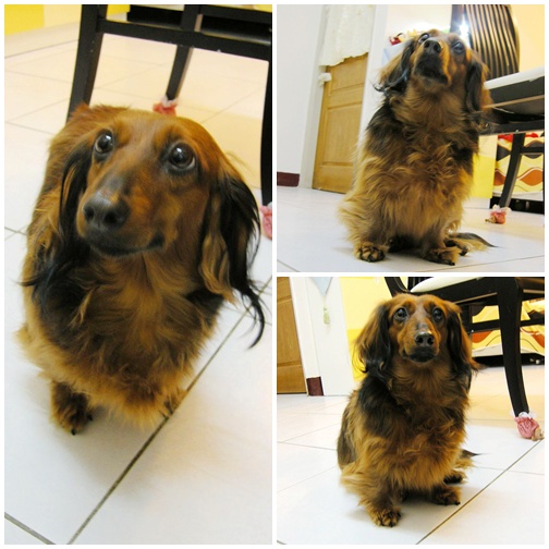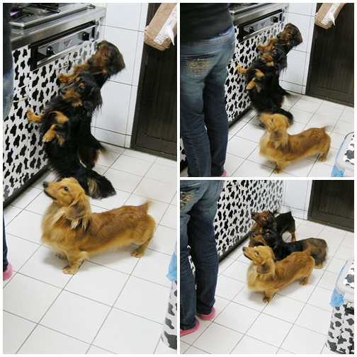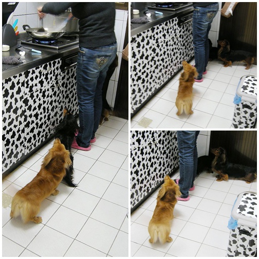 自己乖乖的坐在廚房門口觀察裡面的動靜