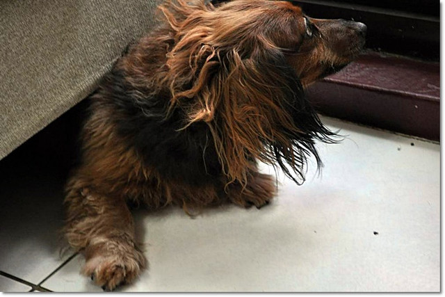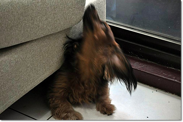 (妳活該啦...誰叫妳要爬到沙發底下去玩)