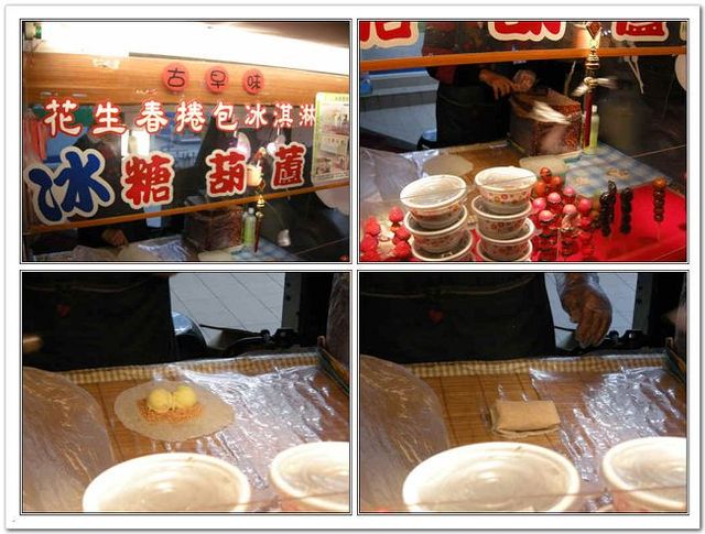 寶貝在這家花生春捲包冰淇淋的小攤停了下來