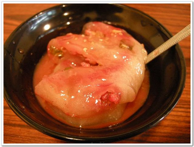 我們點了1粒蔥花1粒筍絲口味的肉圓,由本少爺我先試吃看看![]()