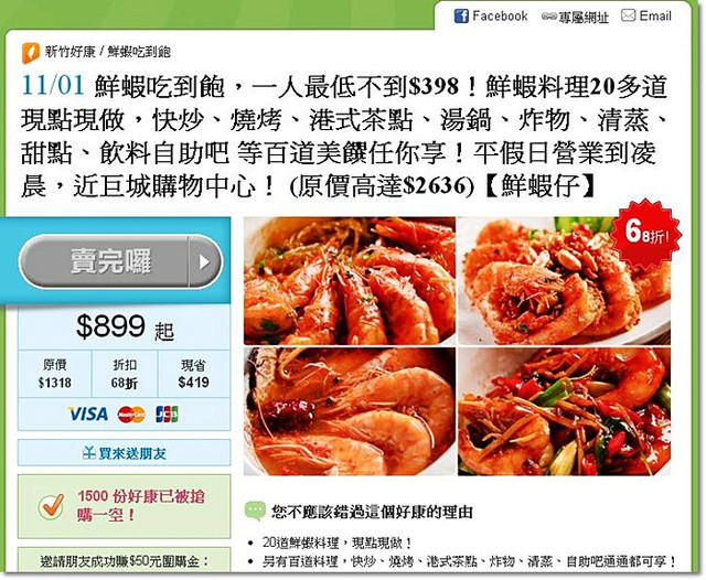 11/01 鮮蝦吃到飽,一人最低不到$398!鮮蝦料理20多道現點現做,快炒、燒烤、港式茶點、湯鍋、炸物、清蒸、甜點、飲料自助吧 等百道美饌任你享!平假日營業到凌晨,近巨城購物中心! (原價高達$2636)【鮮蝦仔】