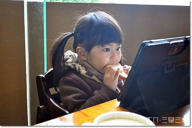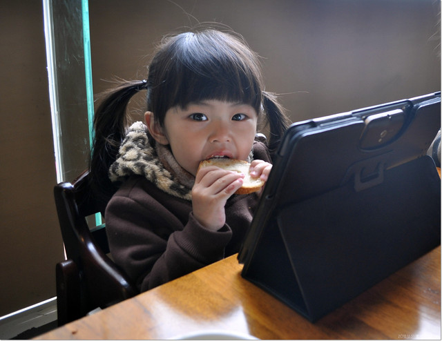 我們在聊天,紜則在一旁啃她的麵包還有玩pad