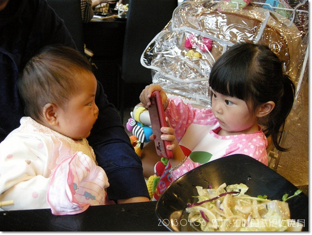 紜就這樣一邊吃肉,一邊幫我們顧妞妞,真棒![]()