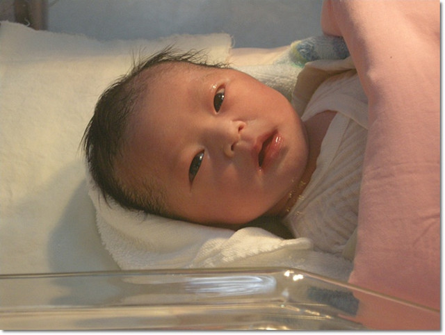 護士小姐幫她整理好放在嬰兒室時的可愛模樣![]()