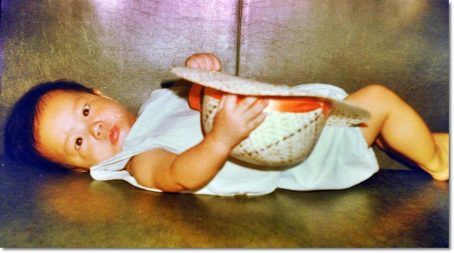 上星期日,我家人拿我小時後的相片來給我老婆看