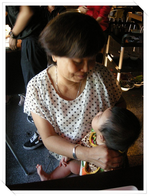 搖著搖著,祖孫兩個通通睡著啦,紜還拿著麻咪的手機去偷拍咧![]()