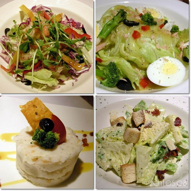 (左上)燻鮭魚綜合生菜 (右上)義式尼斯沙拉