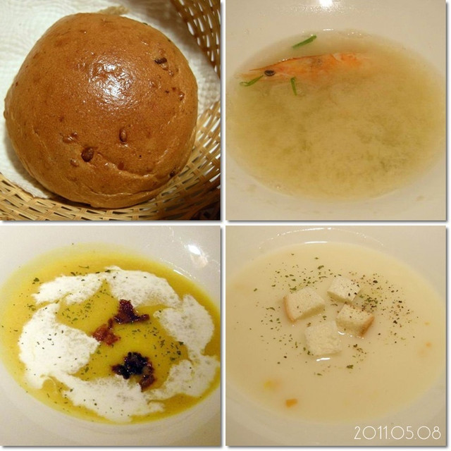 (左上)義式全麥麵包 (右上)海鮮味增吸物