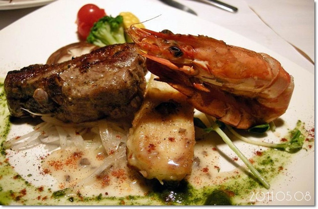 我選的是豪華海陸大餐(羊排+海大蝦+鱈魚)