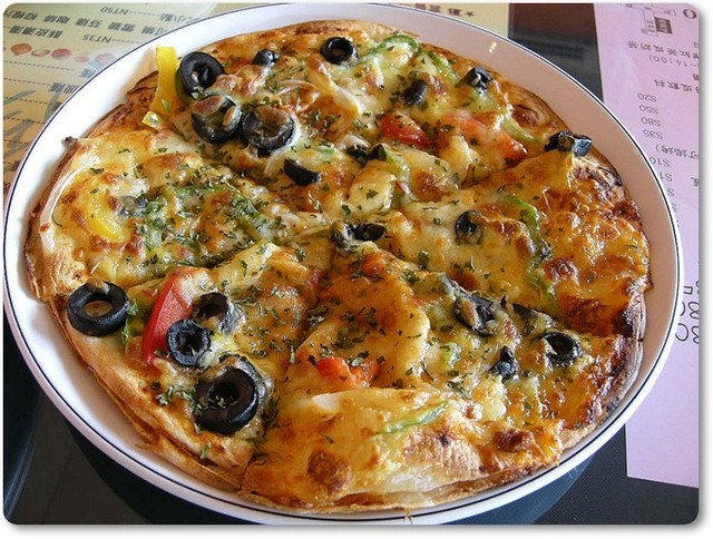 它的披薩雖不厚,但烤的很酥,不錯吃