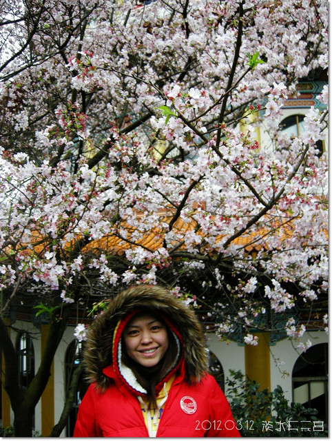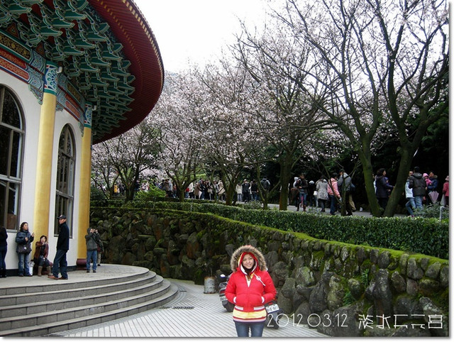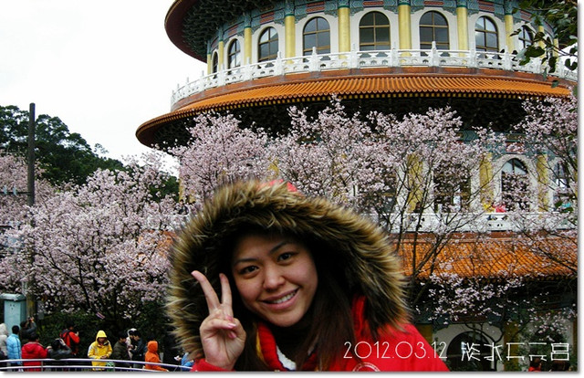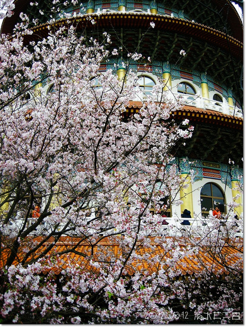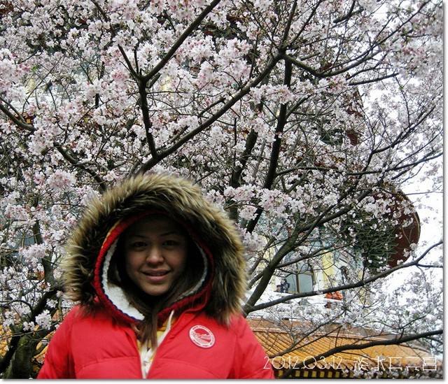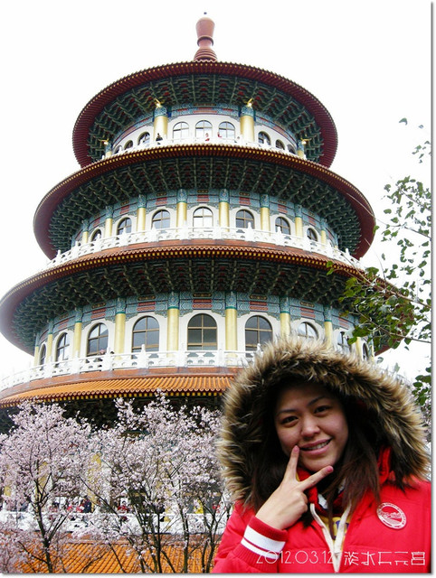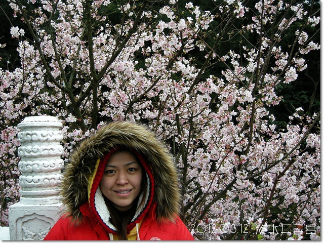 來到天元宮,在入口就先跟幾株櫻花拍幾張照![]()