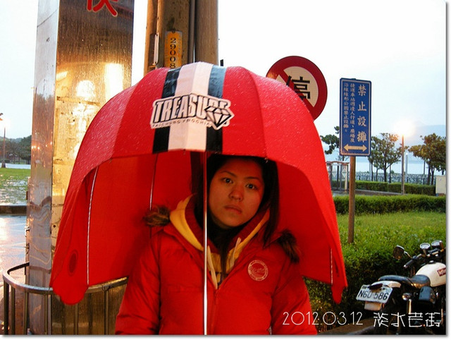 下著雨的星期一的淡水老街,有點冷清...