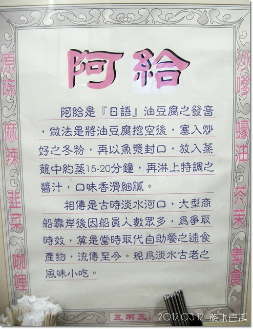 我們先去吃淡水魚丸還有阿給,還特別挑了從沒吃過的店家試試![]()