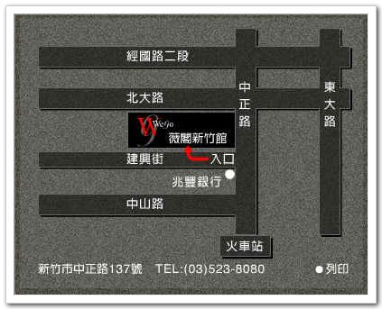 【北二高】:請由新竹交流道下,選擇往新竹方向=>此時您行駛的是景觀大道=>走到底(約十分鐘)牛埔路T字路口右轉=>右轉後第一個經國路十字路口左轉=>約五分鐘看到火車站指示牌的中正路十字路口右轉=>右轉後過第二個紅綠燈二十公尺右手邊兆豐銀行巷口右轉