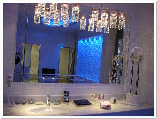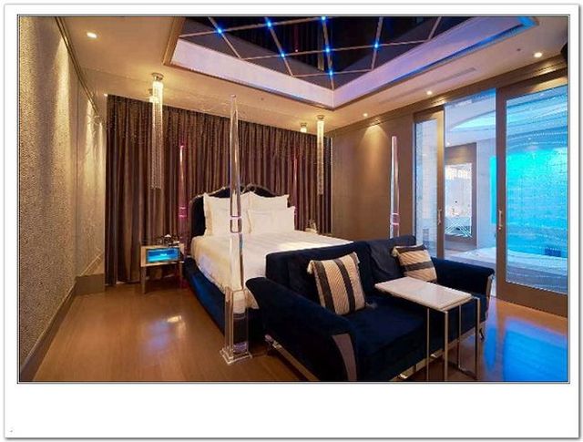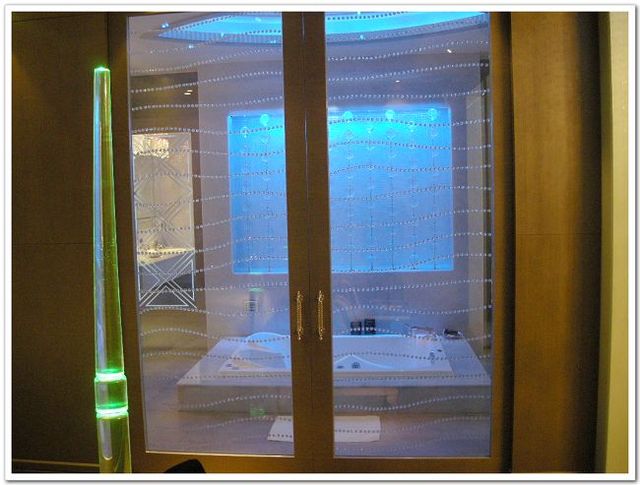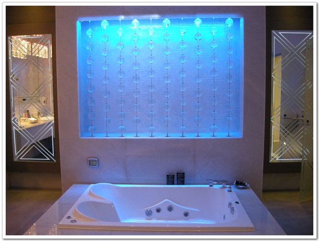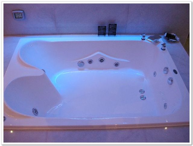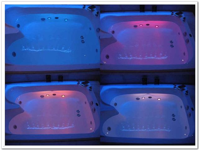 按摩浴缸還有霓虹燈效果,會變不同的顏色唷
