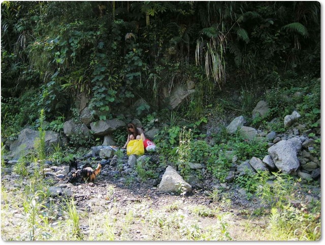 把車停在這塊石牌邊,從旁邊的小路下去就是溪水囉![]()