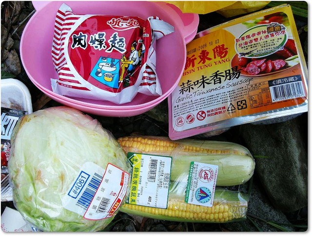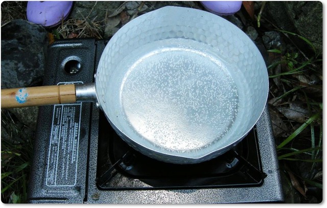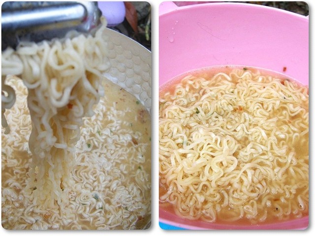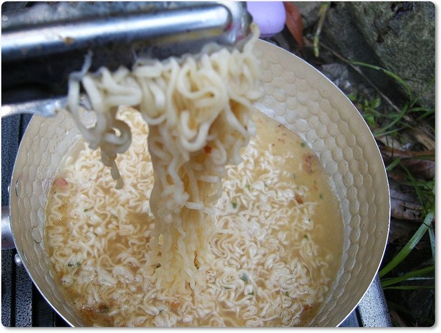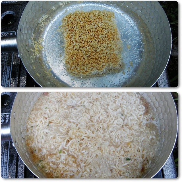 放上鍋子加入我們自帶的水還有泡麵![]()