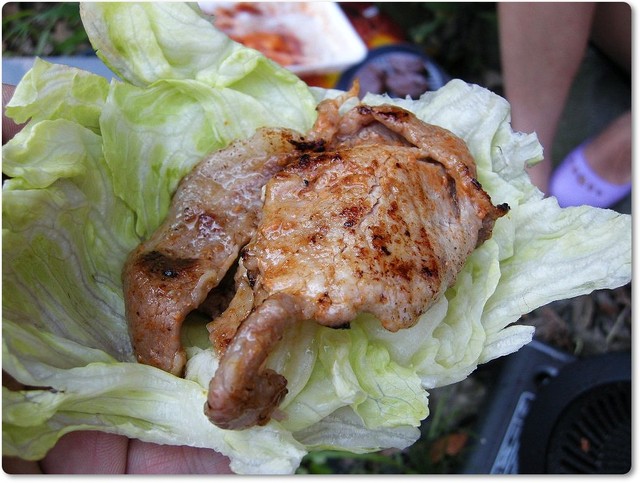 塗上奶油,香噴噴滴就可以開始烤肉囉![]()