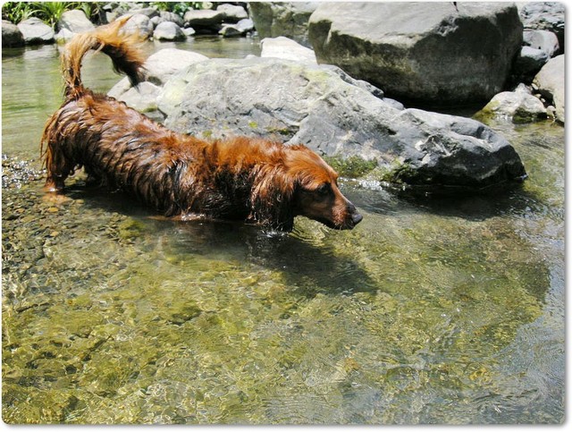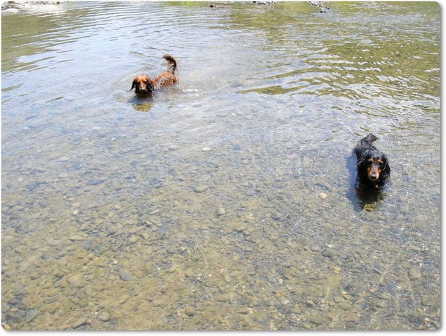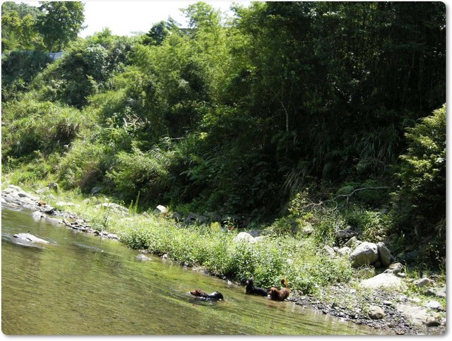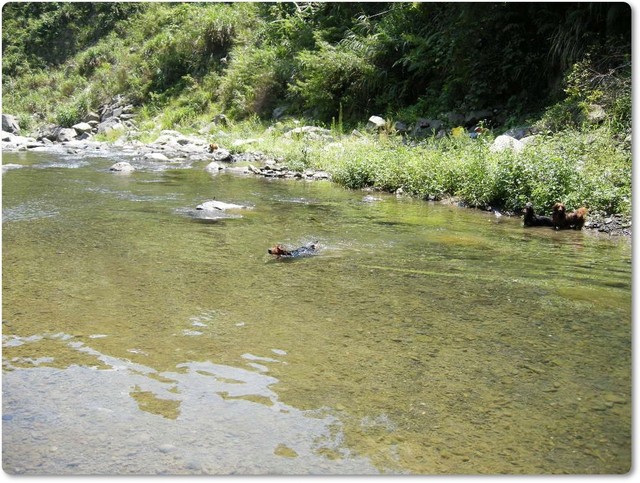 這裡的溪水面頗大滴,且放風讓他們自個兒亂玩也不怕不見