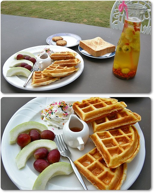 蜂蜜水果鬆餅,奶酥厚片還有菊花枸杞茶
