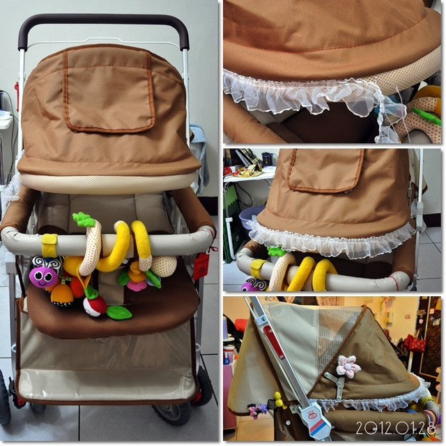 前一晚,我們就去買一些材料幫紜的新推車佈置一下![]()