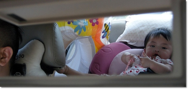 她的日常生活用品加我們的衣物就快塞滿整台車了...