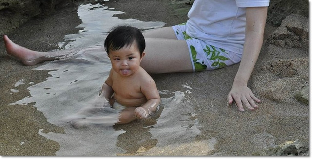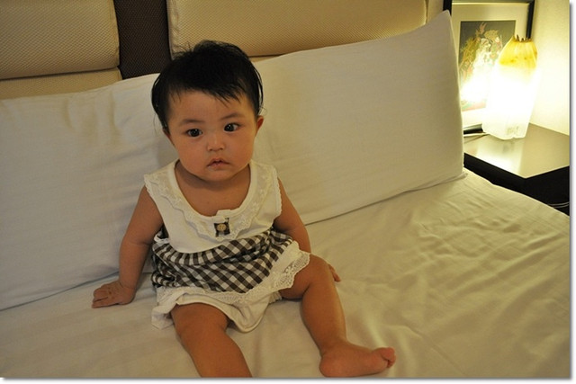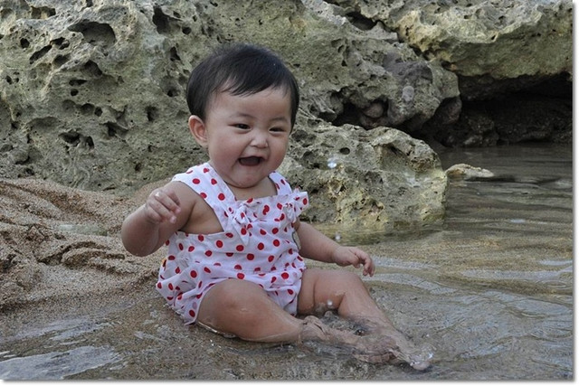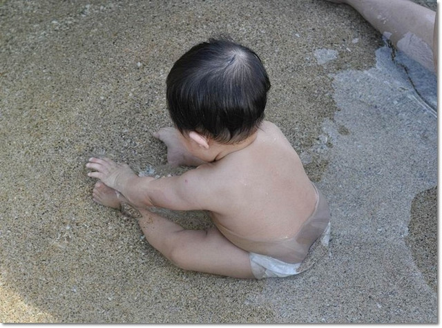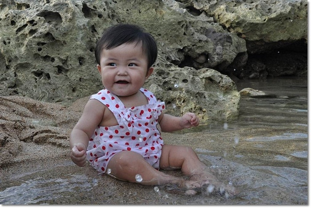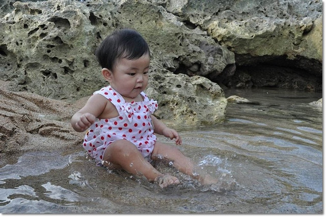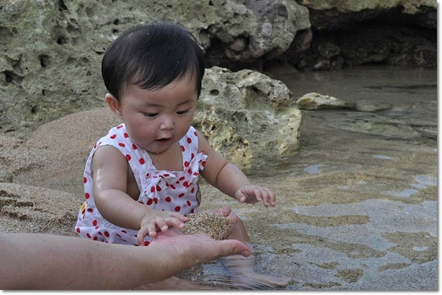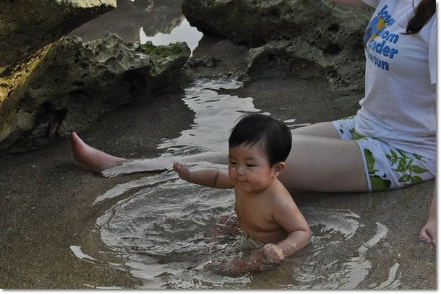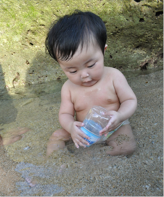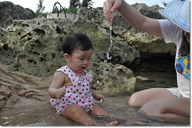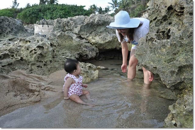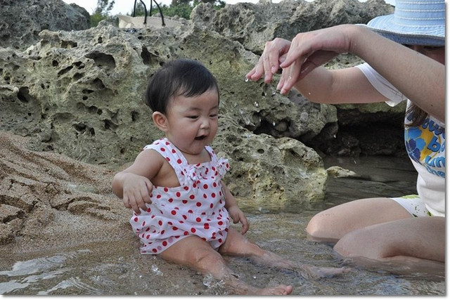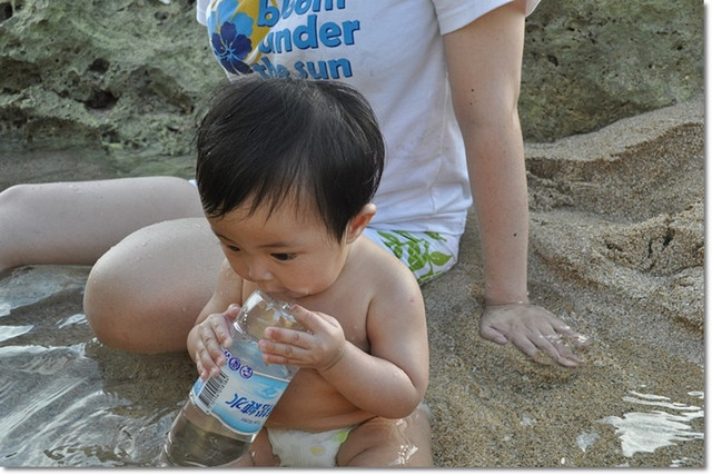 沒有帶玩具來給她拌水玩...就用我們喝水的寶特瓶代替一下囉![]()