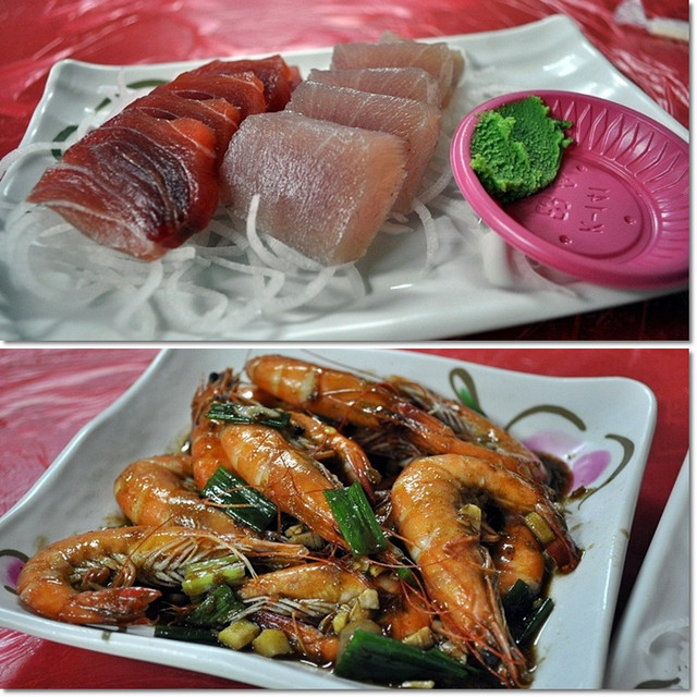 來這邊一定要吃的生魚片($50)還有炒蝦($170)