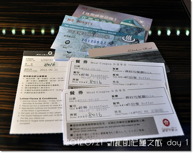 這些是飯店設施使用卷,早餐卷,待幣兌換卷及房卡...