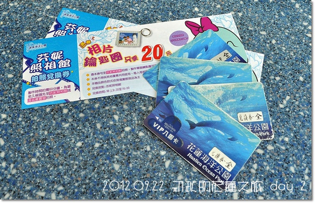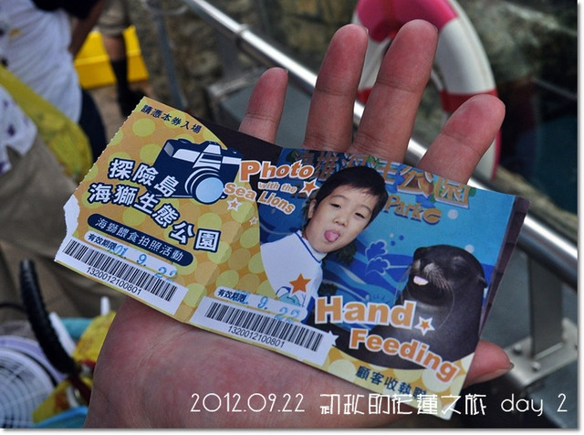 吃完冰,拿著這在海豚劇場買的與海獅拍照的兌換卷($300,可以最多4人合照)