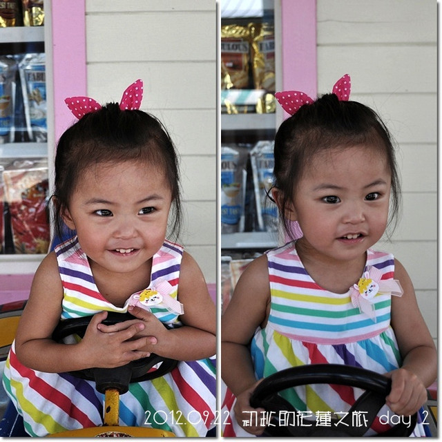 於是我們就先在比較不會曬到太陽的室內區遊盪,讓紜坐搖搖![]()