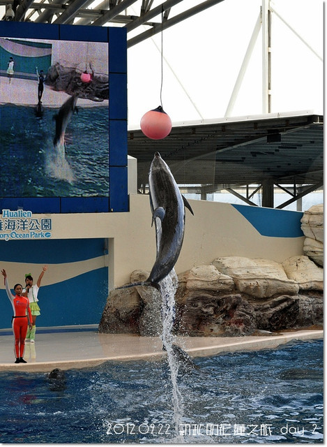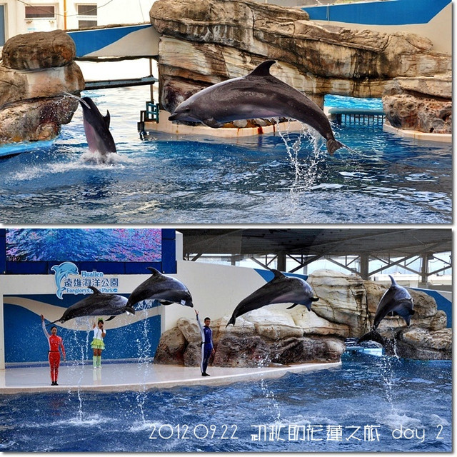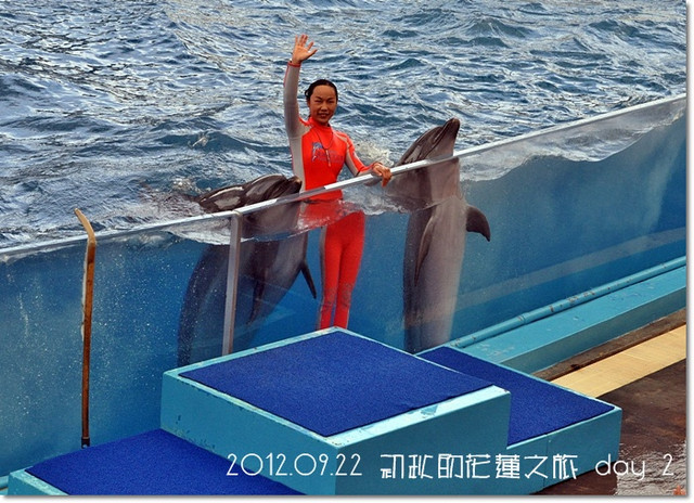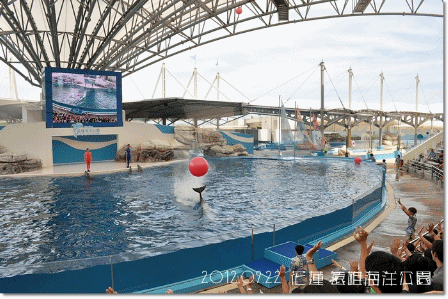 過沒多久,海豚劇場表演開始,就讓我們一起來看相片觀賞一下吧![]()