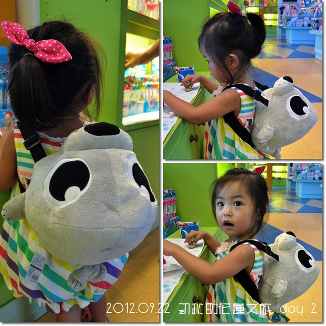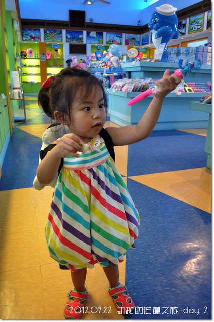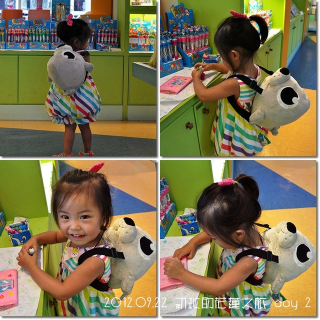 晃著晃著,就晃進禮品店啦,因為裡面放著涼涼的冷氣,紜也跟著玩開了![]()