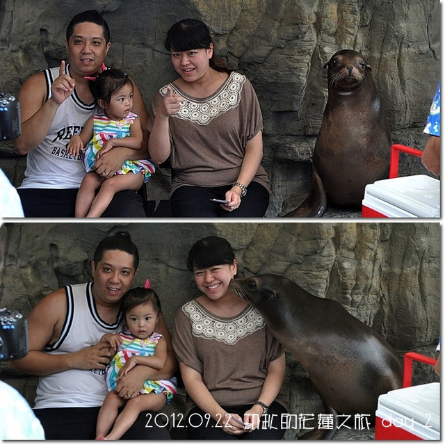 一開始我們跟海獅合照都還OK,且事先有跟工作人員說海獅不要親紜