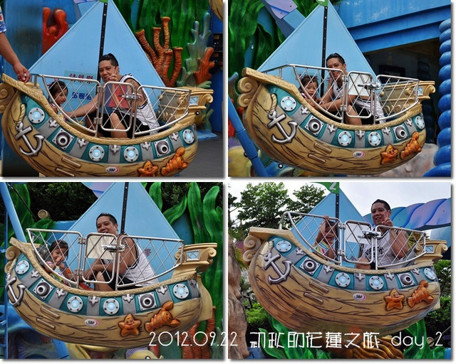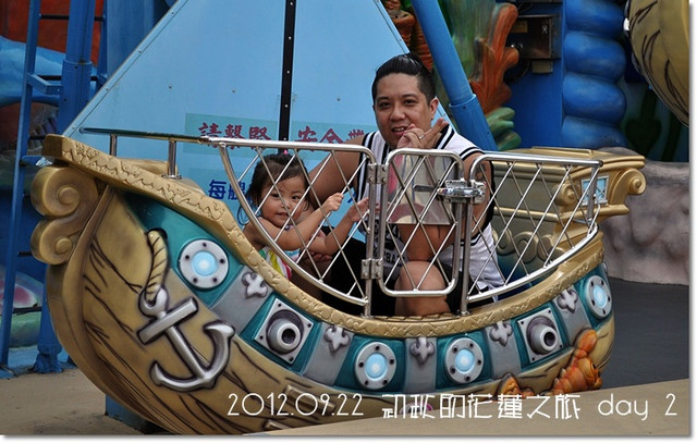 本來還想要去玩海盜船滴,但紜還太小囉,所以...玩一旁的小型海盜船唄![]()