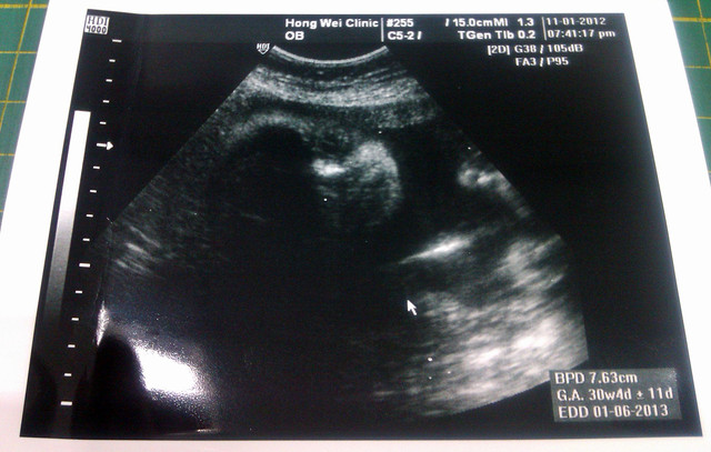 而超音波的圖片,剛好拍到妞妞正在看我們耶...