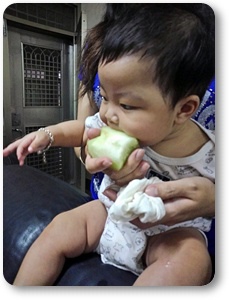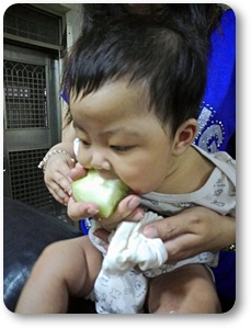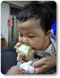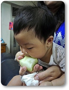 晚上下班回橫山接紜紜與妞妞,妞妞的外婆切了蓮霧給我們吃