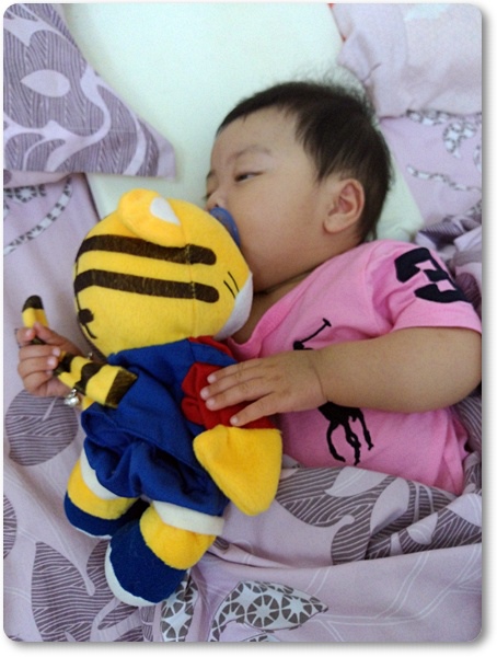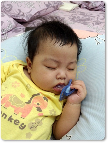妞妞玩自己的嘴嘴玩到睡著囉...
