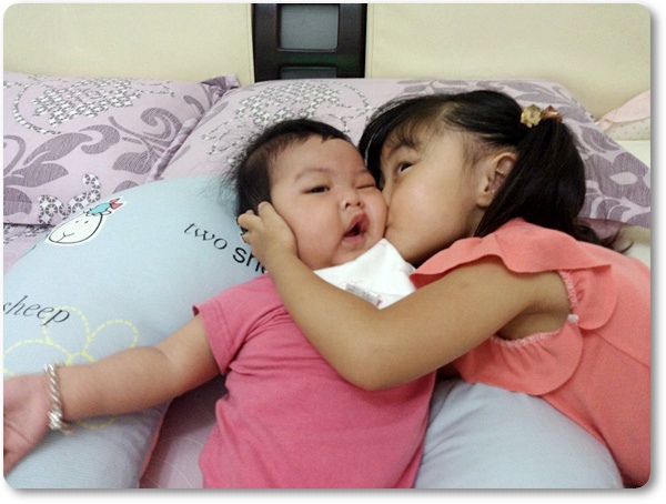 姐姐仍然很愛妞妞,三不五時就要親她,也會跟我們說她愛妞妞