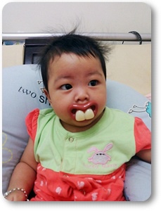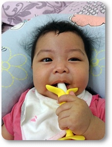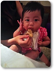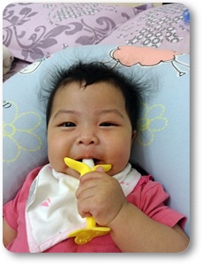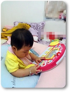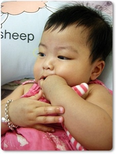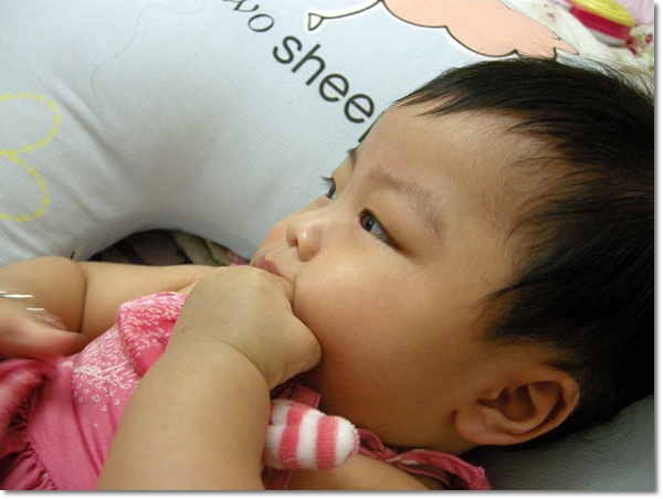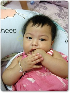 妞妞現在很愛吃手,我們目前聽從麻咪的建議,不特別的禁止她
