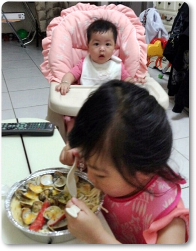 so...到家後馬上幫兩位小朋友洗澡然後餵奶