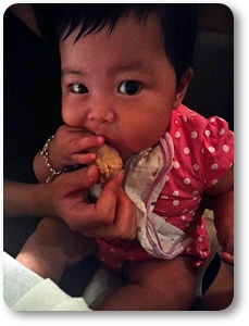 妞妞也有吃一點餐前麵包,結果差點噎到