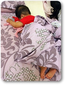 妞妞當晚奇怪的睡姿,順便拍一下她的長腳丫