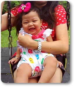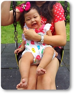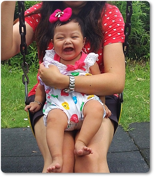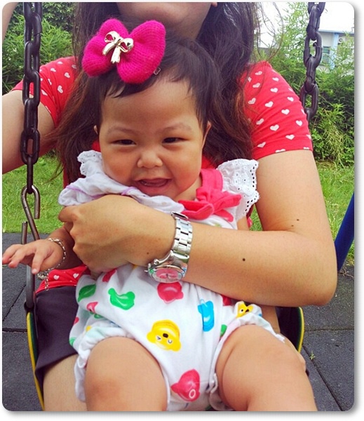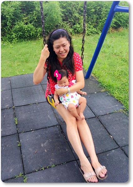 麻咪帶妞妞一起盪鞦韆,妞妞不會怕反而是很喜歡