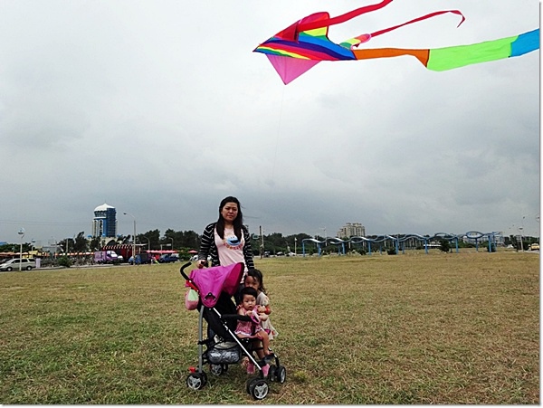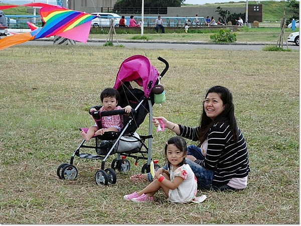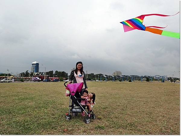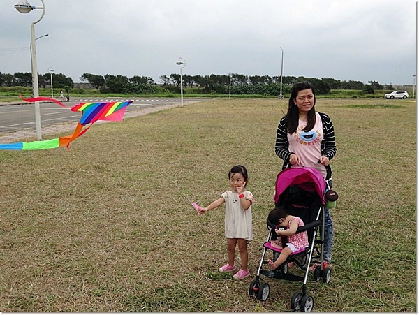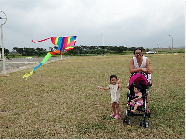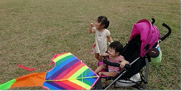 麻咪帶著她的兩位寶貝女兒在草地上放風箏,這畫面...太有fu了啦