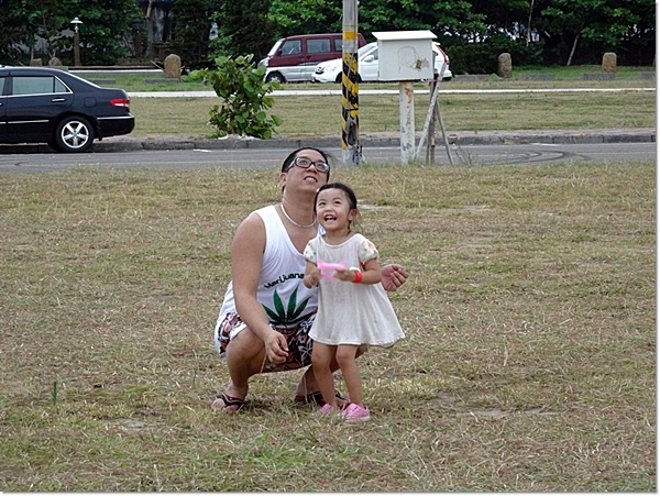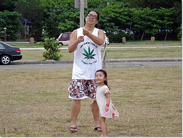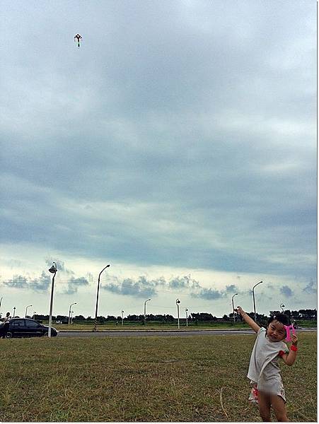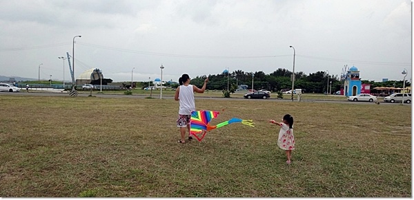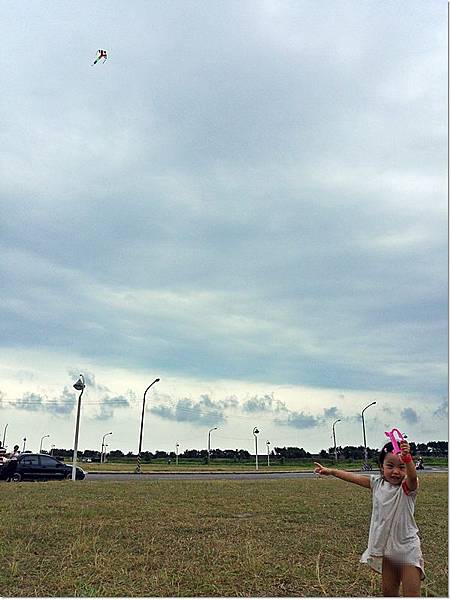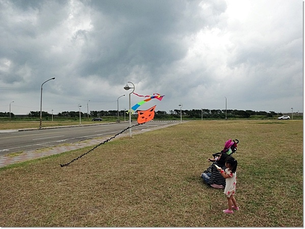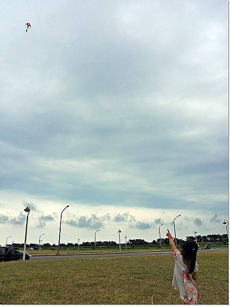 讓姐姐自己試放看看,有教她怎麼放但是她的風箏就是飛不上去...