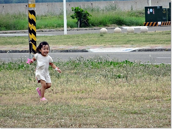 我和姐姐到一旁努力的讓風箏飛起來,因為今天沒有啥風內