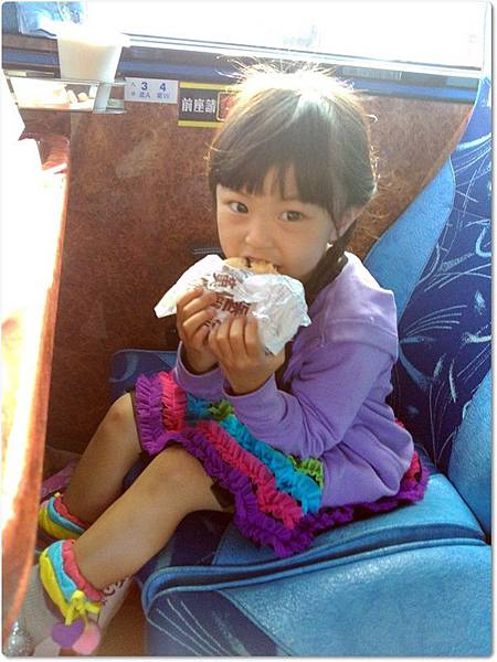 一早7:30就要出發,紜知道要坐遊覽車,配合度很好的有早早起床,上車後有m的早餐