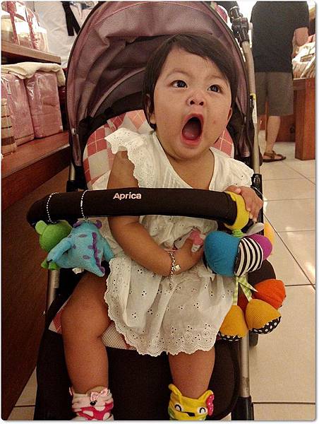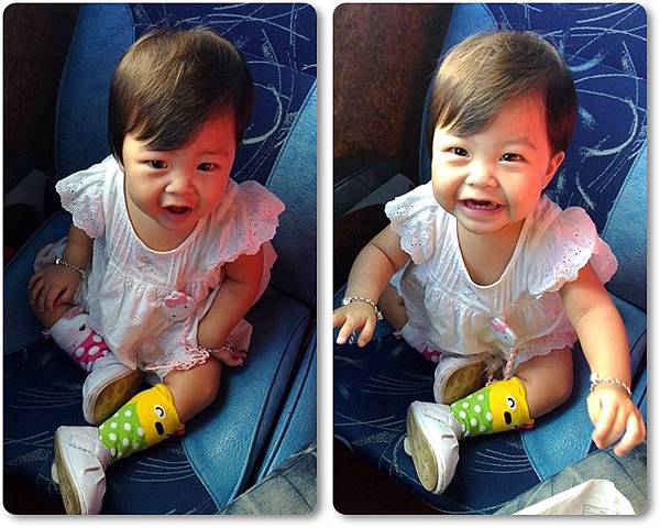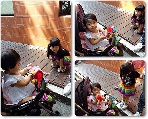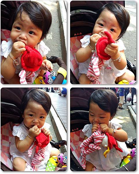 這次出遊是帶勾勾(姐姐取的名子)出門,一開始都還有派上用場,妞妞都有拿來啃著玩