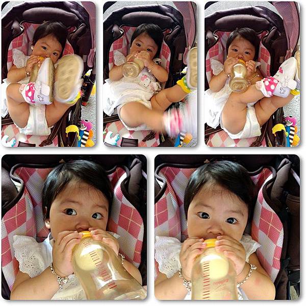 其實現在妞妞可以自行喝奶奶了,她手的力氣頗大,過然大娃兒不是叫假滴
